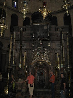 Her fekk me sett klagemuren by light, ennå merr folk idag siden Yom Kippur nerma seg. Så gjekk me ner t det opprinnelige Jerusalem som Kong David grunnla, City of David:) Det va på den haugen David bygga Jerusalem første gang. Så gjekk me ner i Hezekaias tunellen som var vannforsyningen t byen. Denne tunnellen va ca 1 km lang, og va fyllt me vann midt opp på leggene heila tiå. Den e å anbefala t alle som ska ein tur t Jerusalem. Så gjekk me inn i gamlebyen for å sjå på gravkjerkå. Dette e ein av dei plassane dei trur korset og gravå kan ha vore. Katolikkane har pynta kraftigt for å sei de sånn. Me va åsså på den andre golgata og såg kor Jesus konne ha honge. Litt merr luthersk øve denne plassen;)