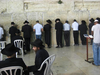 Me vurderte å sedda opp ein levegg forran klagemuren for oss som ikkje har så møye å klaga øve. Her va jødane samla kvelden før Yom Kippur for å be.